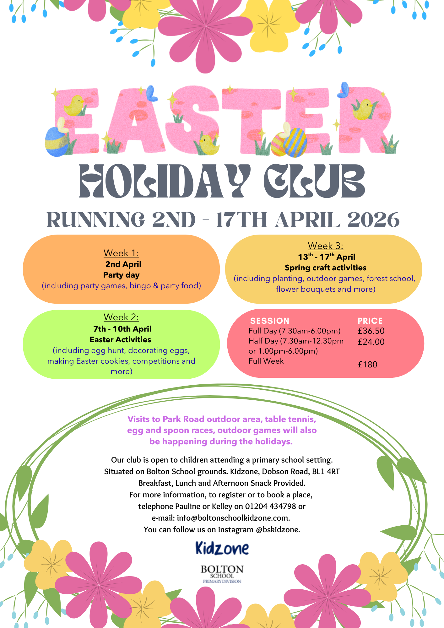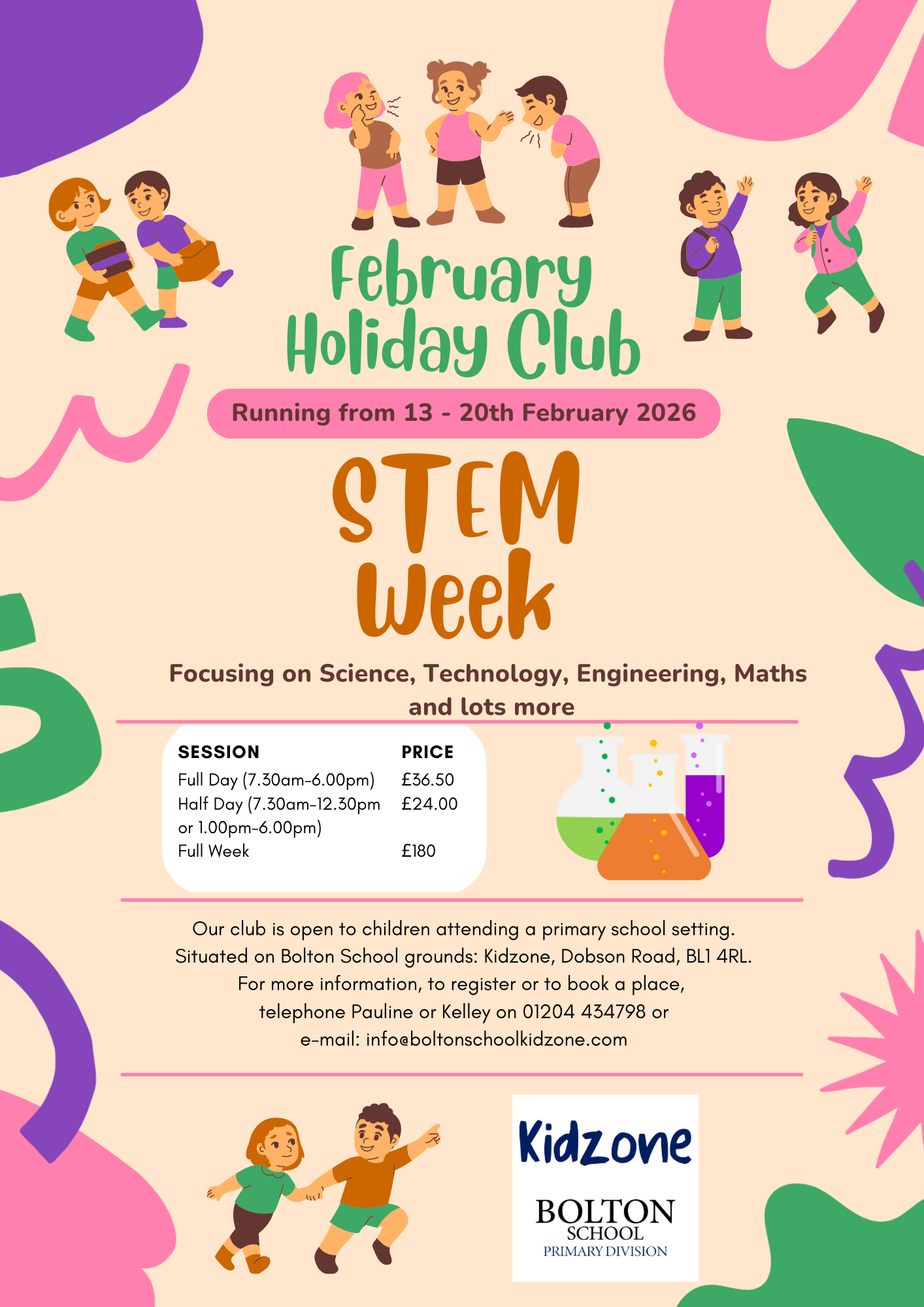 Bolton School Kidzone Holiday Club runs during half term Holidays We are open from